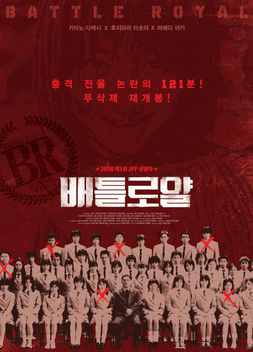 처음 봤을 때 영화가 너무 잔인한 장면이 많아서 충격도 받았지만 재밌게 본 영화입니다. 그 당시 너무 재밌게 봐서 두세 번 더 보았던 기억이 납니다. 친구 중 한 명이 이 영화에 너무 빠져서 한동안 배틀 로열 얘기만 하였던 기억이 납니다. 잔인한 장면은 있지만 추천할 만한 영화입니다. 세상에 이런 영화를 만들 수 있는 나라는 일본이 유일하다고 생각합니다. 나온 지 20년이 지났지만 동급생들끼리 죽음의 서바이벌게임을 한다는 설정은 지금 생각해도 참신합니다. 지금 한국이 드라마나 영화, 음악으로 다른 나라에 영향을 미치고 있지만 제가 학창 시절 때만 해도 일본의 영화나 만화, 음악을 많이 보고 듣고 하였습니다. 이런 참신한 설정의 영화가 많이 나오면 좋겠습니다. 일본은 충분히 그럴 수 있는 문화적 기반이 있는 나라라고 생각합니다.