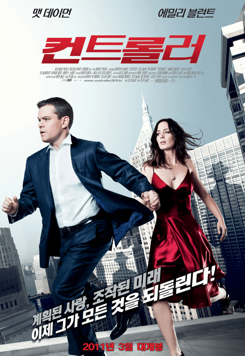 영화 <컨트롤러>는 2011년 개봉한 미국의 멜로 스릴러 영화입니다. 맷 데이먼, 에밀리 블런트, 앤서니 매키가 출연하였으며 등급은 12세 관람가입니다. 맷 데이먼은 주인공으로 나오며 전도유망한 정치인 "데이비드"를 연기하였고, 에밀리 블런트는 그의 연인이자 직업이 댄서인 "엘리스"역할을 맡았습니다. 앤서니 매키는 의문의 집단 "조정국"의 직원으로 나오지만, 자신의 잘못을 뉘우치고 그들을 도와주는 조력자인 "해리" 역할로 나옵니다.
